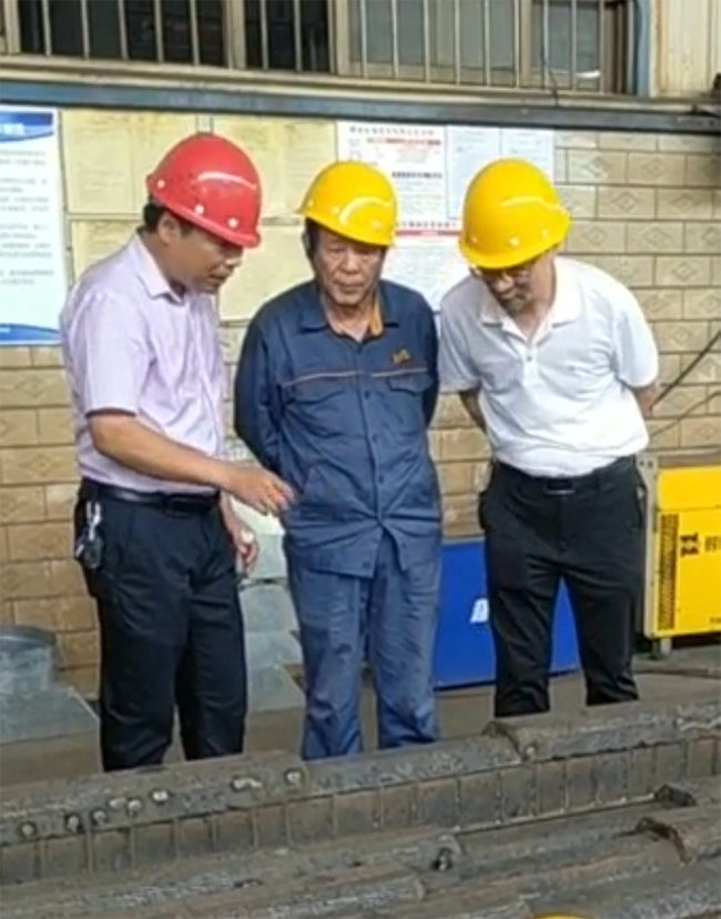 2021年7月15日,公司再次邀請建黨100周年“七一勛章”獲得者艾愛國來我公司,就埋弧燒焊的焊嘴角度,電流電壓的匹配、滾子的轉(zhuǎn)速等技術(shù)難題,對我公司青年技師進(jìn)行技術(shù)指導(dǎo),公司總經(jīng)理劉美林全程陪同。