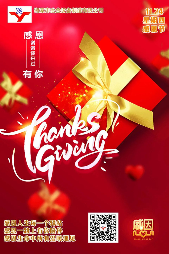 感恩節(jié)里,湘潭冶金設(shè)備衷心感謝那些一直堅守在身邊的人——員工、客戶、朋友、供應(yīng)商、合作伙伴,以及所有支持與信賴我們的人。正是因為這所有人的不離不棄、攜手同行,才讓我們心中常駐溫暖,縱使獨行也不孤單,成長為國內(nèi)冶金礦山設(shè)備專業(yè)定制的佼佼者。